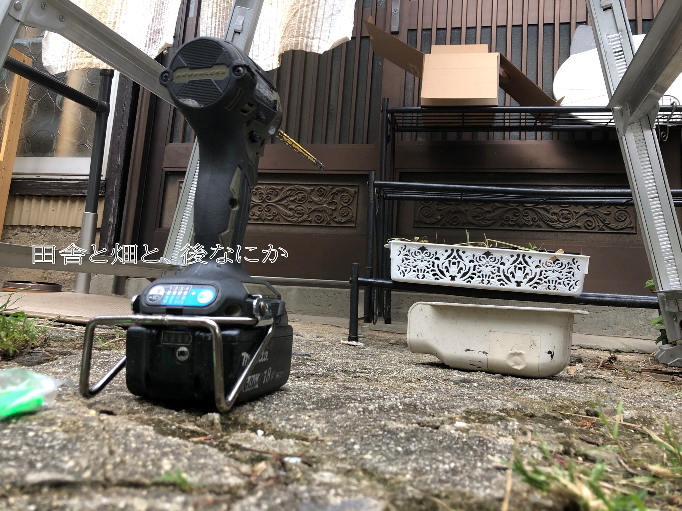 建設業をしている夫の社用車の職人道具をひっぱりだし、工事開始。安易に私が設置するような作業とは違い、本格的な設置です。これは大仕事だ!